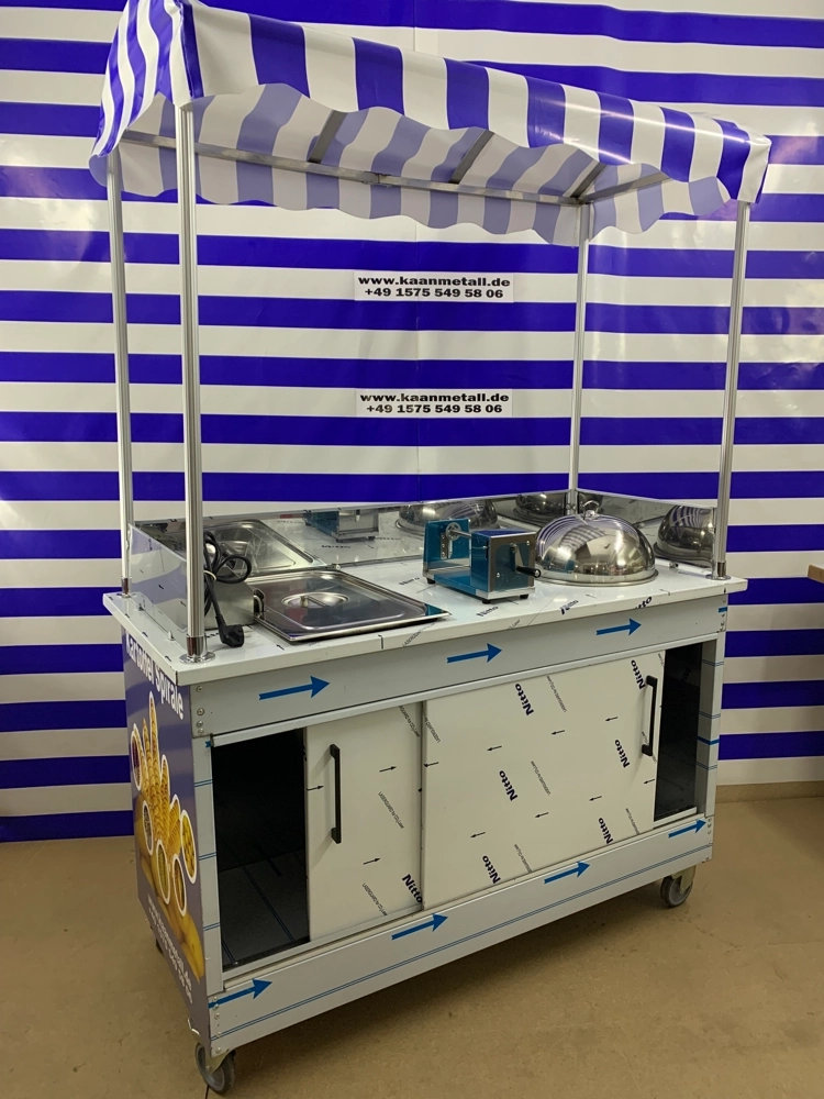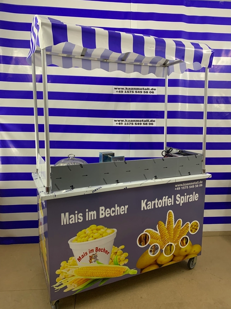 Sokak lezzetlerinin popülerliğini artırmak ve müşteri memnuniyetini en üst düzeye çıkarmak için tasarlanmış bu Bardakta Mısır ve Çubukta Patates Arabası, işletmenizin vazgeçilmezi olacak. Hem bardakta mısır hem de çubukta patates için ideal bir çözüm sunan bu ürünle, işletmenizi bir adım öne taşıyın!