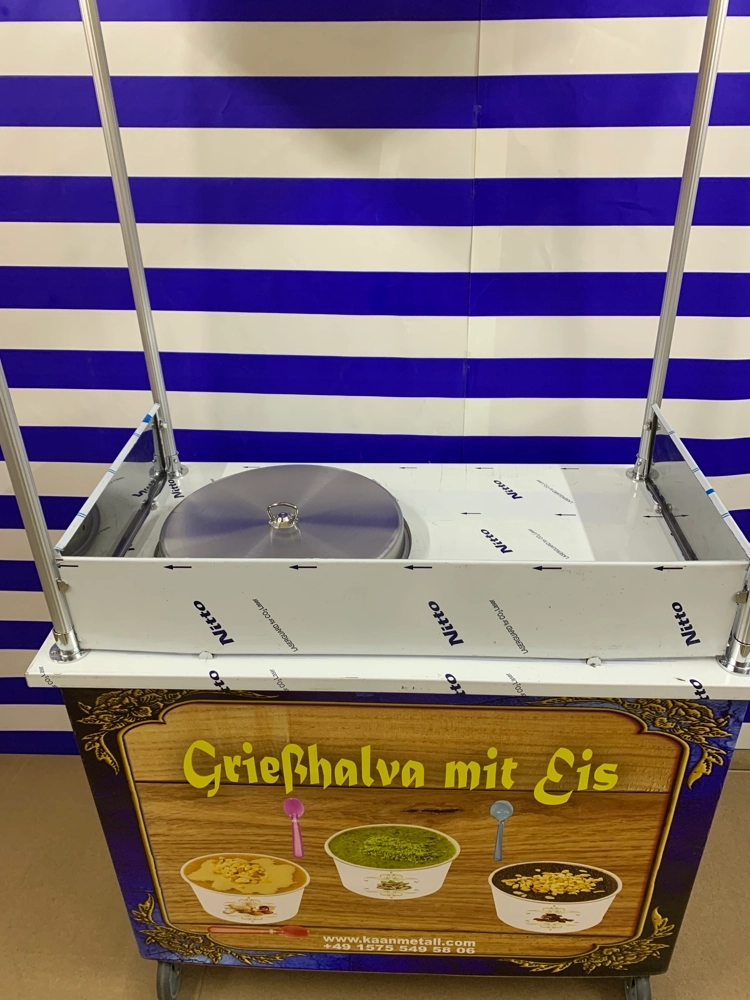 Dondurmalı İrmik Helvası Arabası ile hem göz alıcı hem de kullanışlı bir çözüm elde edersiniz. Sokak tatlılarınızı en iyi şekilde sunmak ve müşteri memnuniyetini artırmak için ideal bir tercihtir. İhtiyacınıza uygun tasarımı ve dayanıklı yapısıyla, bu ürün işletmenizin vazgeçilmezi olacak.