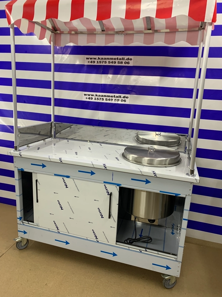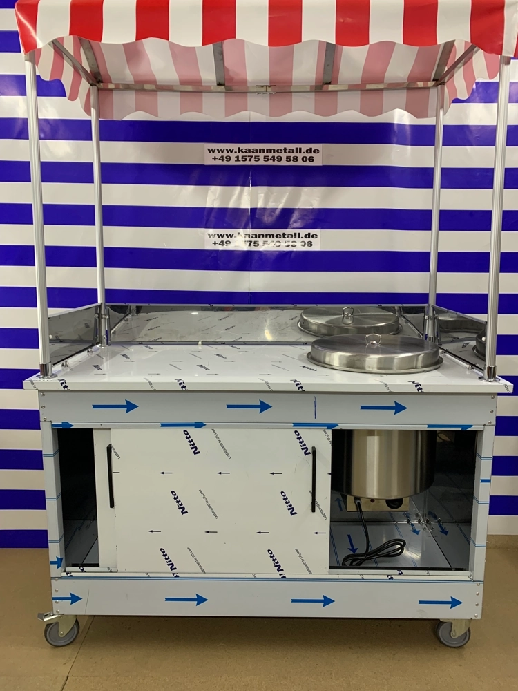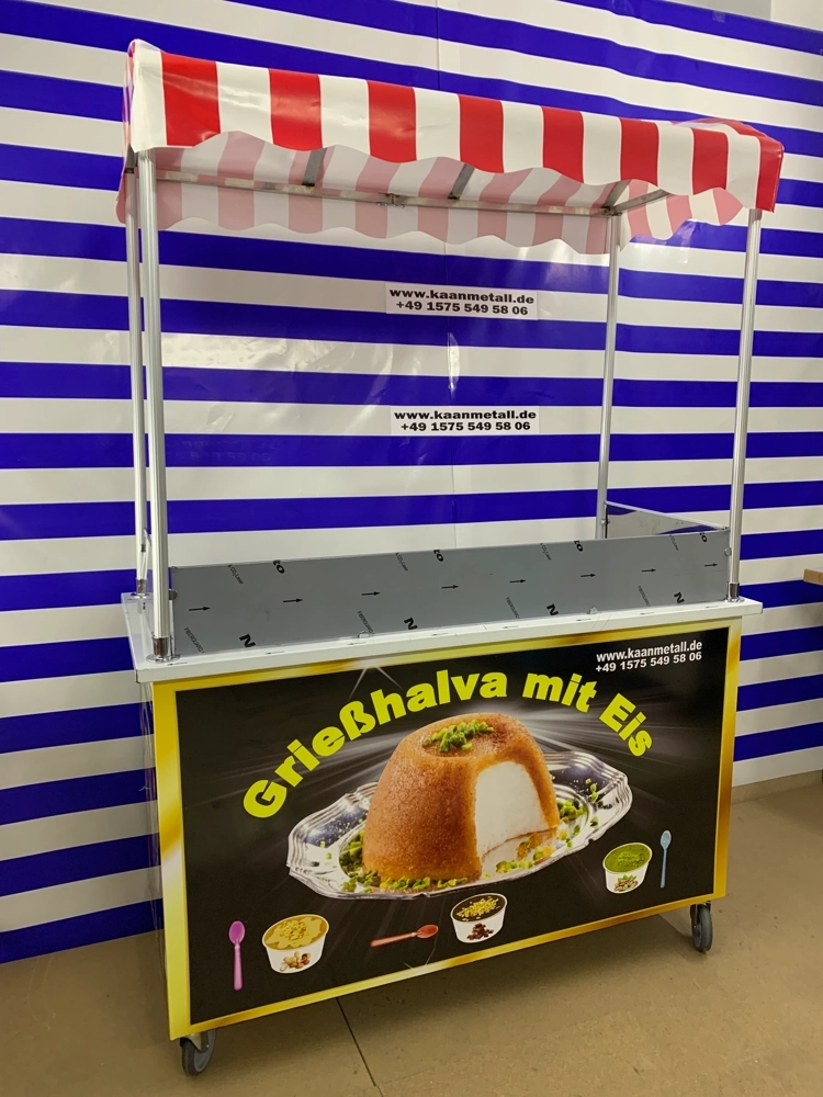 Dondurmalı İrmik Helvası Arabası ile hem göz alıcı hem de kullanışlı bir çözüm elde edersiniz. Sokak tatlılarınızı en iyi şekilde sunmak ve müşteri memnuniyetini artırmak için ideal bir tercihtir. İhtiyacınıza uygun tasarımı ve dayanıklı yapısıyla, bu ürün işletmenizin vazgeçilmezi olacak.